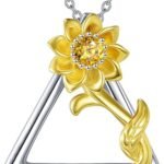 The Sunflower Necklace features a beautifully crafted sunflower design in a triangle shape, symbolizing growth and positivity. Made from high-quality sterling silver, it is adorned with a vibrant citrine gemstone that adds a touch of brightness and elegance. This necklace is not only a stunning accessory but also a meaningful gift, perfect for those who appreciate nature’s beauty and its symbolism.
